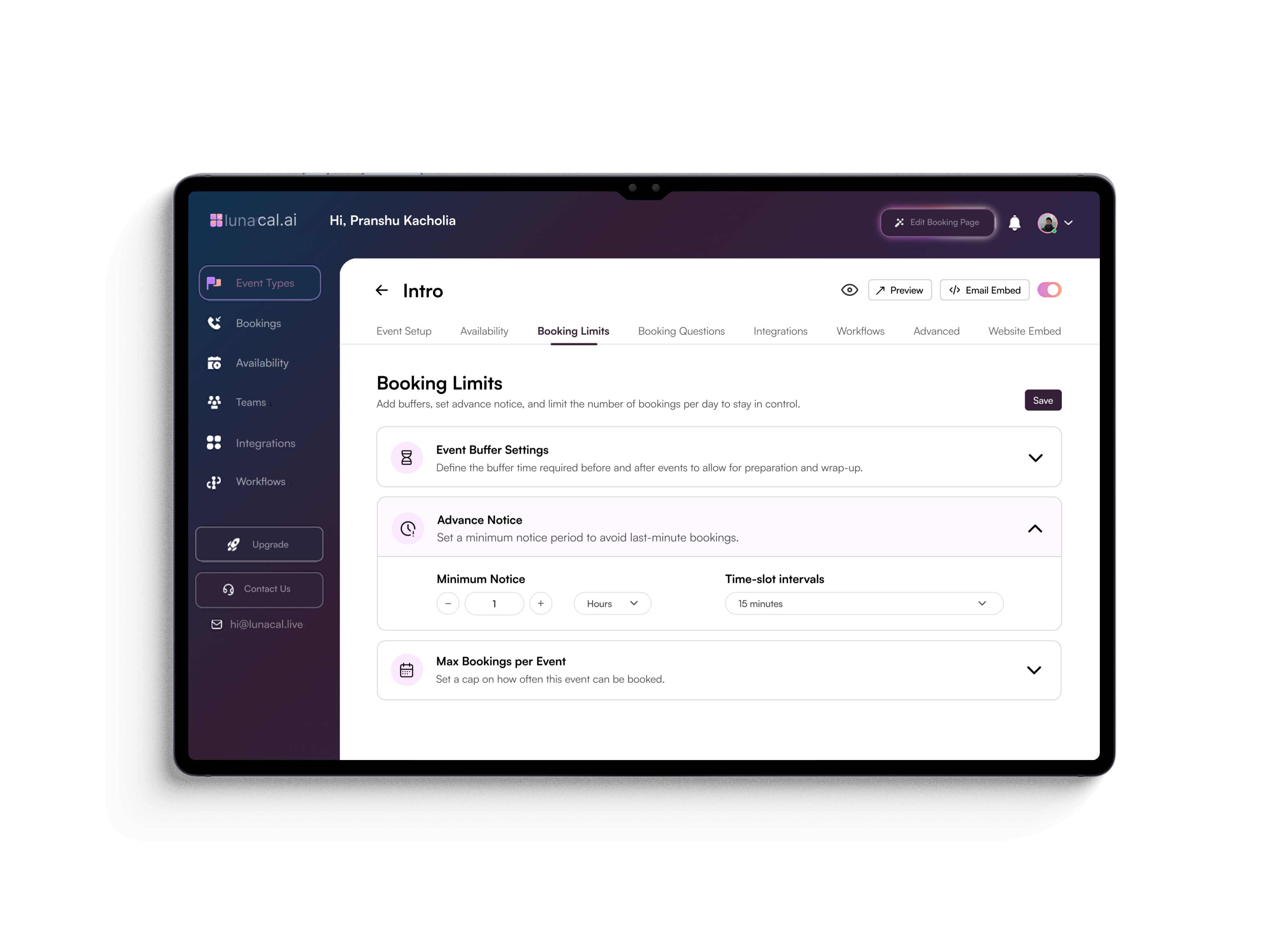 As part of a UI task, I redesigned the dashboard for Lunacal—a scheduling platform—focusing on improving visual clarity, usability, and brand consistency. Key enhancements included better text hierarchy, simplified layout, use of brand colors, and improved input components. I applied progressive disclosure, redesigned the navigation, and introduced cleaner spacing and visual balance to elevate the user experience.